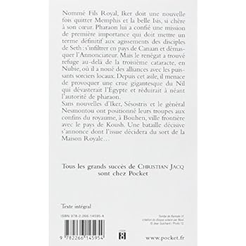 Bon livre, je ne suis pas objective car j'aime les livres de Christian Jacq, celui-ci est un peu plus mystique que certains autres, ça ne gâche en rien l'histoire, il faut juste le savoir.